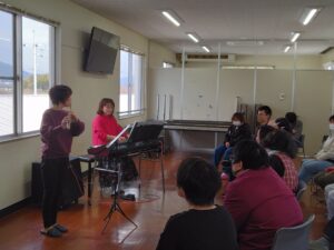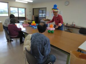 令和8年3月19日(木)、レクリエーション行事を実施しました。外出や団体行動が苦手な施設利用者も楽しめるように、このたびは、施設内での企画となりました。市内の障害者就労事業所で作っていただきました美味しいお弁当を食べた後は、多くのボランティアの方々の協力のもと、ミニコンサートを皮切りに、小物やバルーンアート作り、モルックやカローリングの体験コーナーなど、みなさんに楽しい時間を過ごしていただきました。